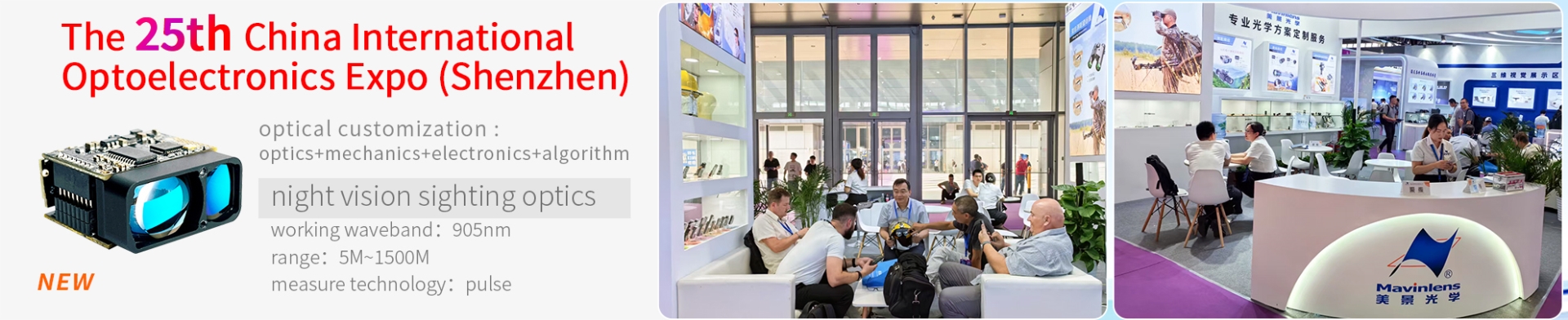 Mavinlens, founded in 2004 , is a leading technology enterprise in the field of freeform optics and aspherical optics. Mavinlens devotes itself into the development, production, and sales of the core technology products such as optical information gathering and optical information restoration, and specializes in providing complete opto-mechatronics integrated solutions with optical core.The products cover the fields of laser-rangefinder optics, night-vision imaging sight optics, digital microscope optics, toy optics, micro-projection optics, and wearable optics (including freeform VR & AR opto-electromechanics integrated display module), etc.